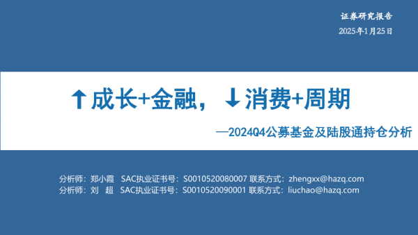 【华安证券】【20250125】2024Q4公募基金及陆股通持仓分析:↑成长%2b金融,↓消费%2b周期-45页
