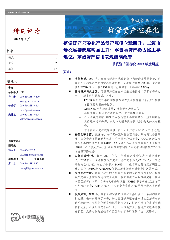 【中诚信国际】【202202】中诚信-信贷资产证券化2022年度展望-18页