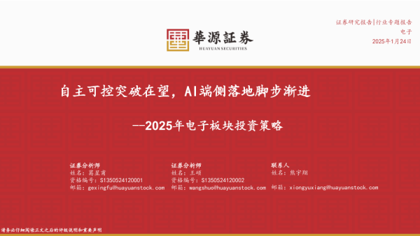 【华源证券】【20250124】2025年电子行业板块投资策略:自主可控突破在望,AI端侧落地脚步渐进-52页