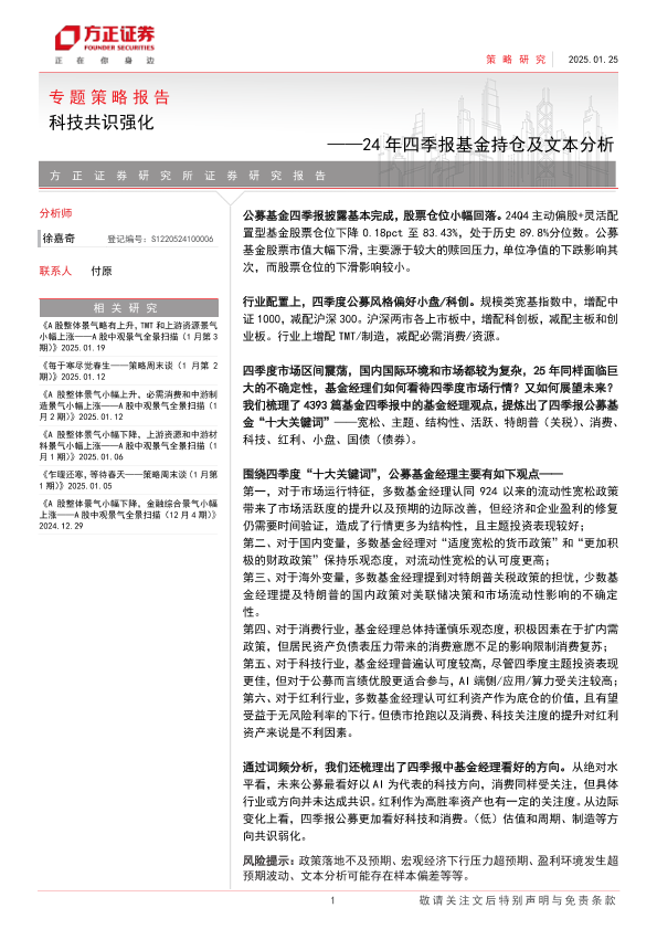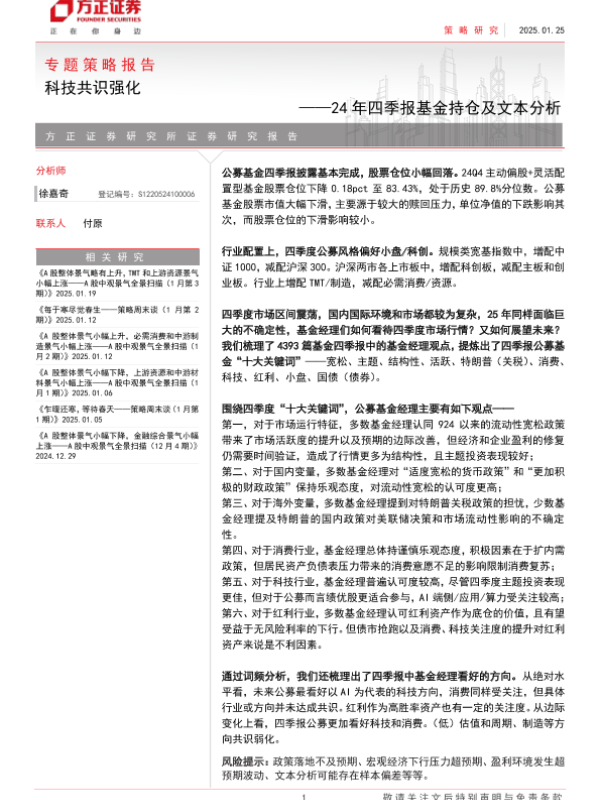 【方正证券】【20250125】24年四季报基金持仓及文本分析:科技共识强化-10页