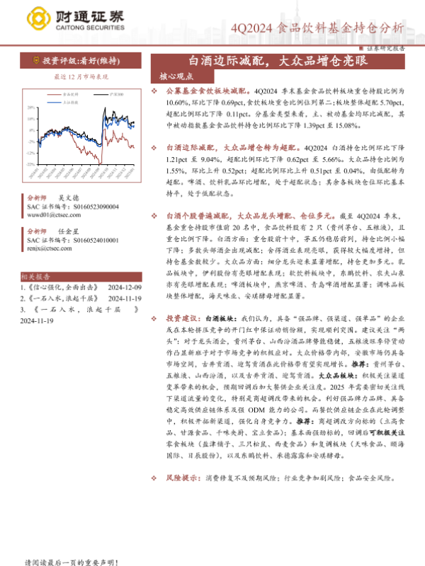 【财通证券】【202412】4Q2024食品饮料行业基金持仓分析:白酒边际减配,大众品增仓亮眼-11页