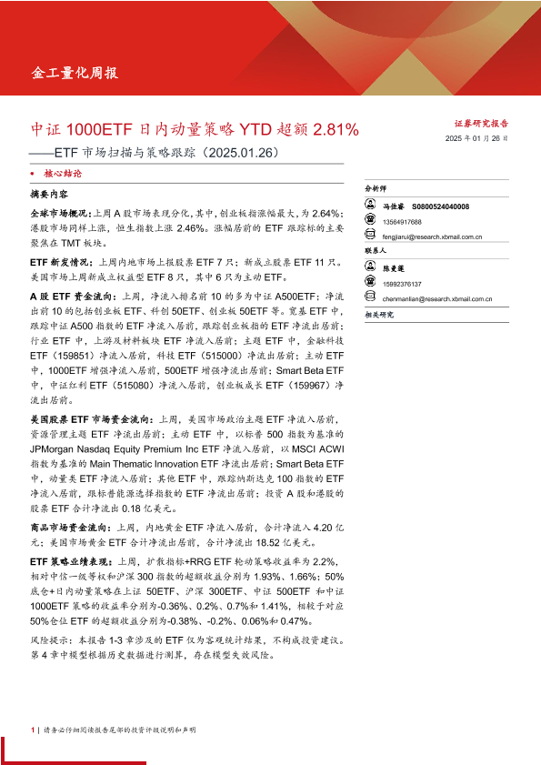 【西部证券】【20250126】ETF市场扫描与策略跟踪:中证1000ETF日内动量策略YTD超额2.81%-21页