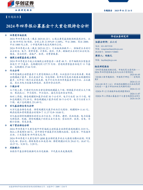 【华创证券】【20250124】2024年四季报公募基金十大重仓股持仓分析-27页