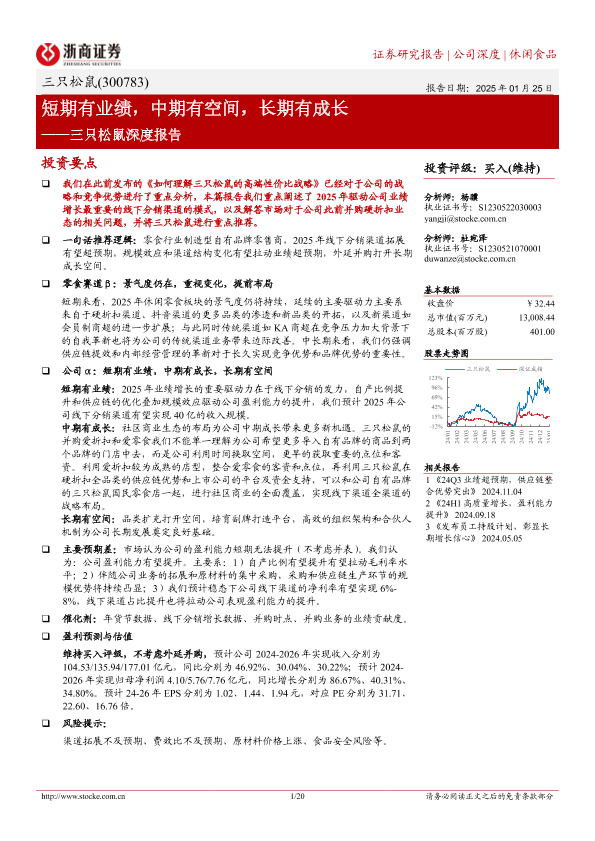 【浙商证券】【20250125】三只松鼠(300783)深度报告:短期有业绩,中期有空间,长期有成长-20页