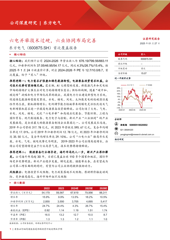 【西部证券】【20250127】东方电气(600875)首次覆盖报告:六电并举技术过硬,六业协同布局完善-36页