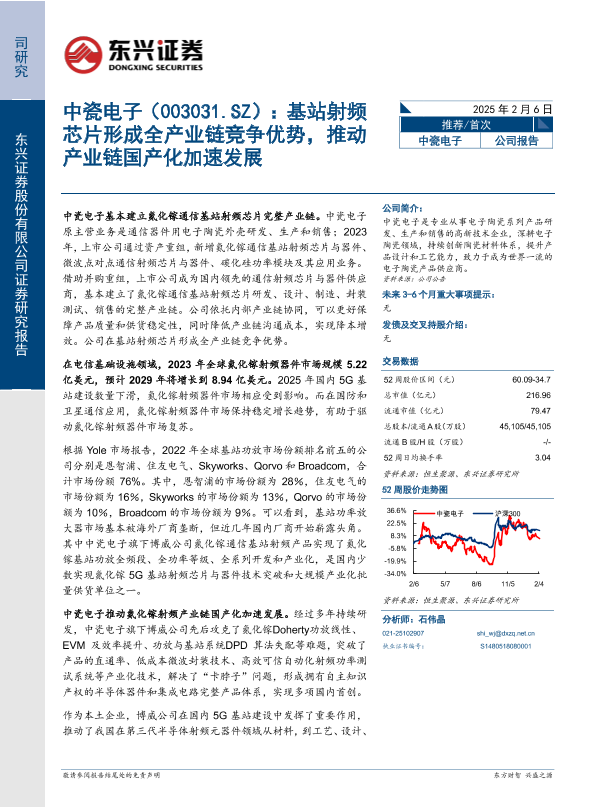 【东兴证券】【20250206】中瓷电子(003031)基站射频芯片形成全产业链竞争优势,推动产业链国产化加速发展-17页