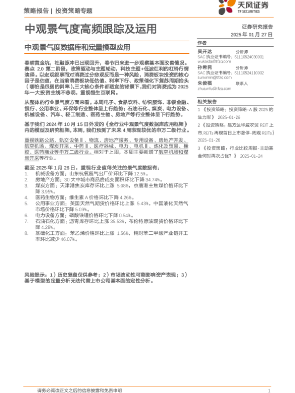 【天风证券】【20250127】中观景气度高频跟踪及运用:中观景气度数据库和定量模型应用-18页