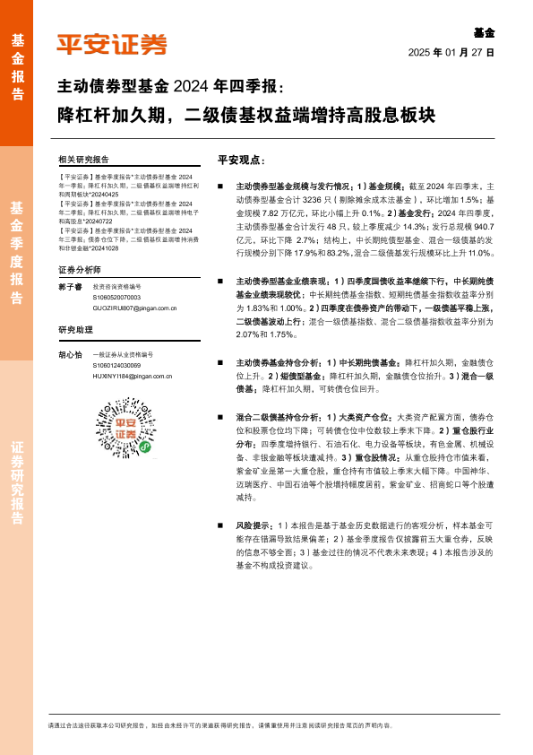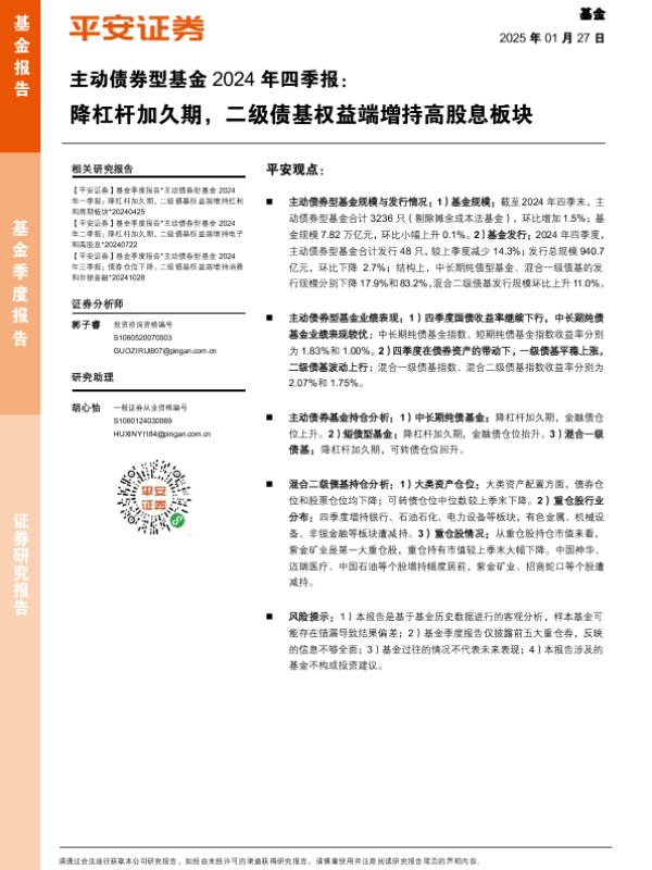 【平安证券】【20250127】主动债券型基金2024年四季报:降杠杆加久期,二级债基权益端增持高股息板块-18页