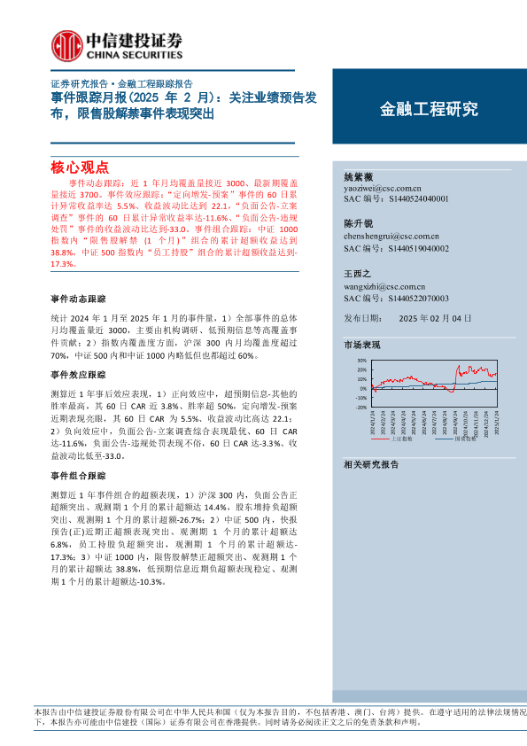 【中信建投证券】【20250204】事件跟踪月报(2025年2月) 关注业绩预告发布,限售股解禁事件表现突出-13页
