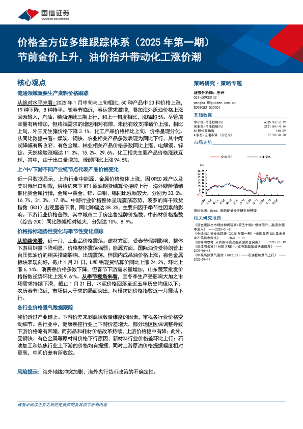 【国信证券】【20250124】价格全方位多维跟踪体系(2025年第一期):节前金价上升,油价抬升带动化工涨价潮-23页