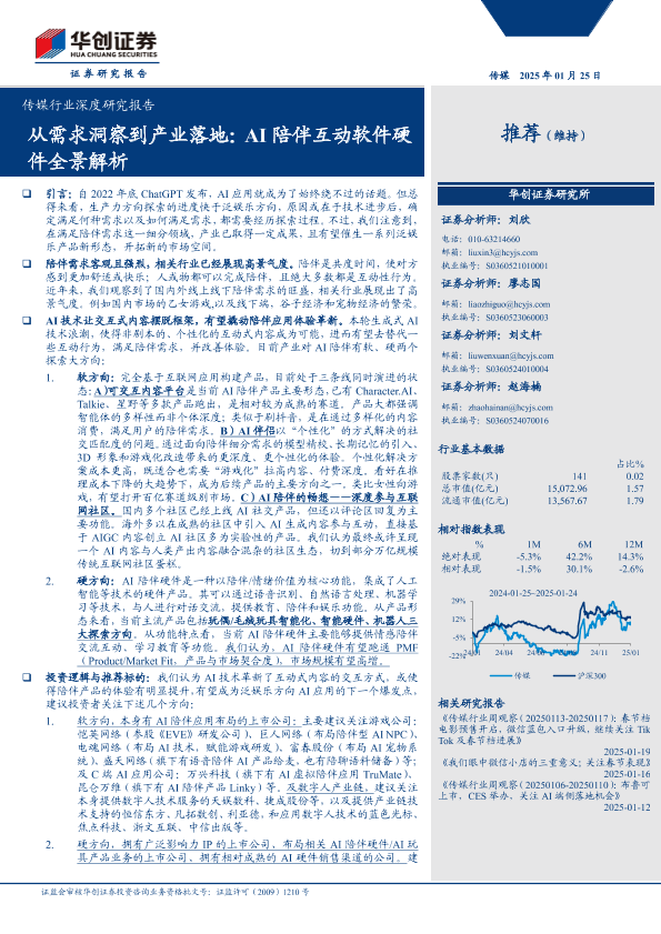 【华创证券】【20250125】传媒行业深度研究报告:从需求洞察到产业落地,AI陪伴互动软件硬件全景解析-30页