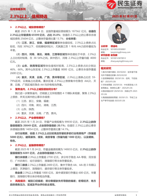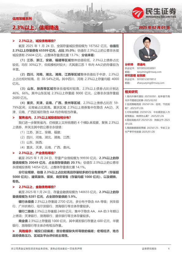 【民生证券】【20250203】信用策略系列:2.3%以上,信用精选-17页