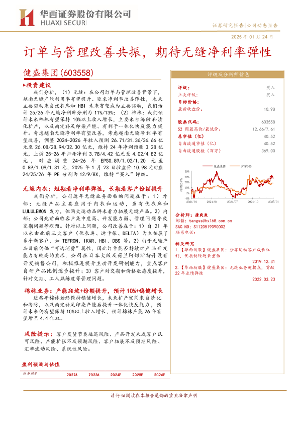 【华西证券】【20250124】健盛集团(603558)订单与管理改善共振,期待无缝净利率弹性-15页