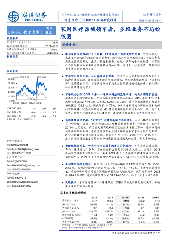 【海通证券】【20250203】可孚医疗(301087)公司研究报告:家用医疗器械领军者,多维业务布局绘版图-15页