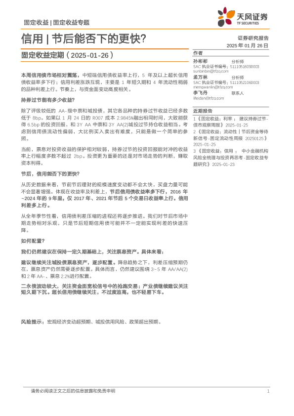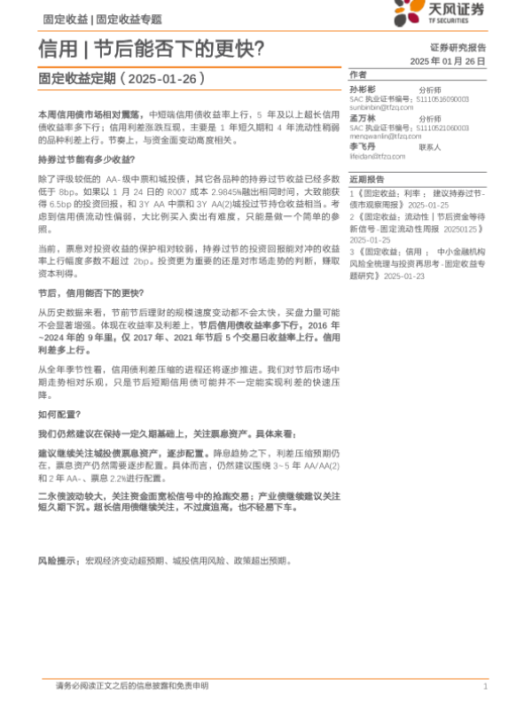 【天风证券】【20250126】固定收益定期:信用|节后能否下的更快?-24页