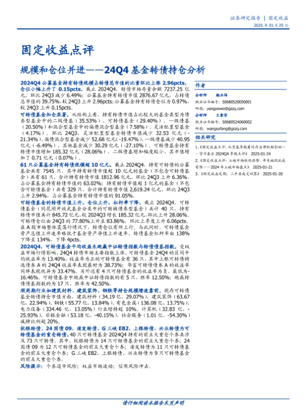 【国盛证券】【20250125】固定收益点评:24Q4基金转债持仓分析,规模和仓位并进-15页
