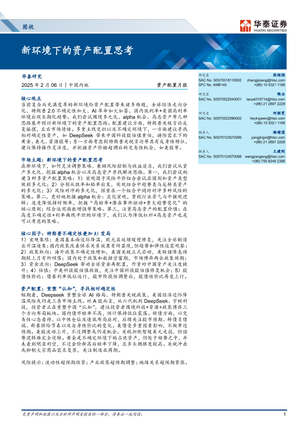 【华泰证券】【20250206】固收资产配置月报:新环境下的资产配置思考-26页