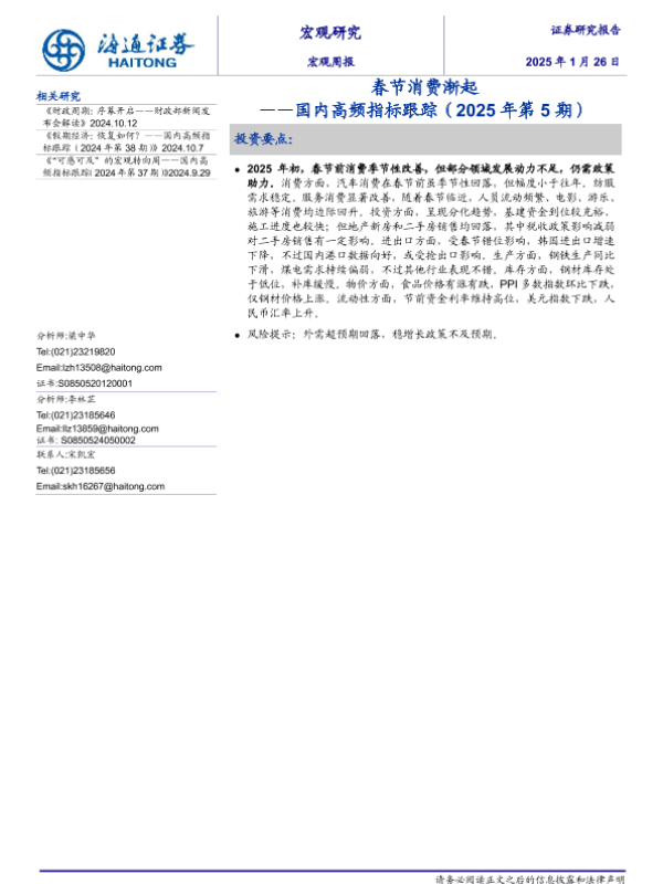 【海通证券】【20250126】国内高频指标跟踪(2025年第4期):春节消费渐起-11页