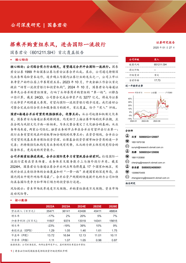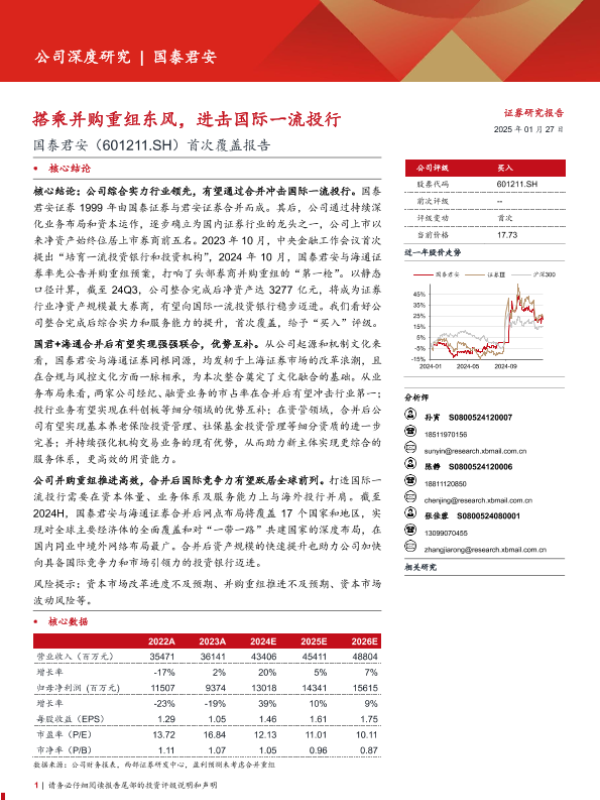【西部证券】【20250127】国泰君安(601211)首次覆盖报告:搭乘并购重组东风,进击国际一流投行-29页