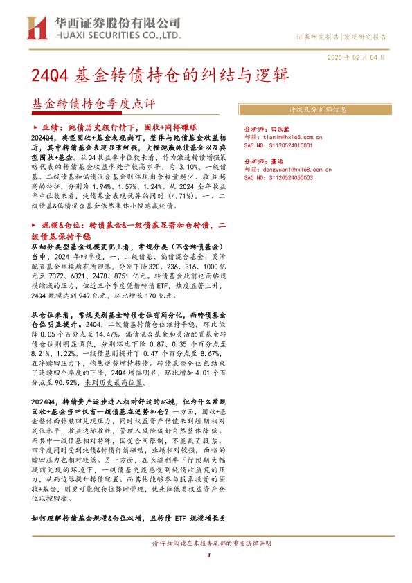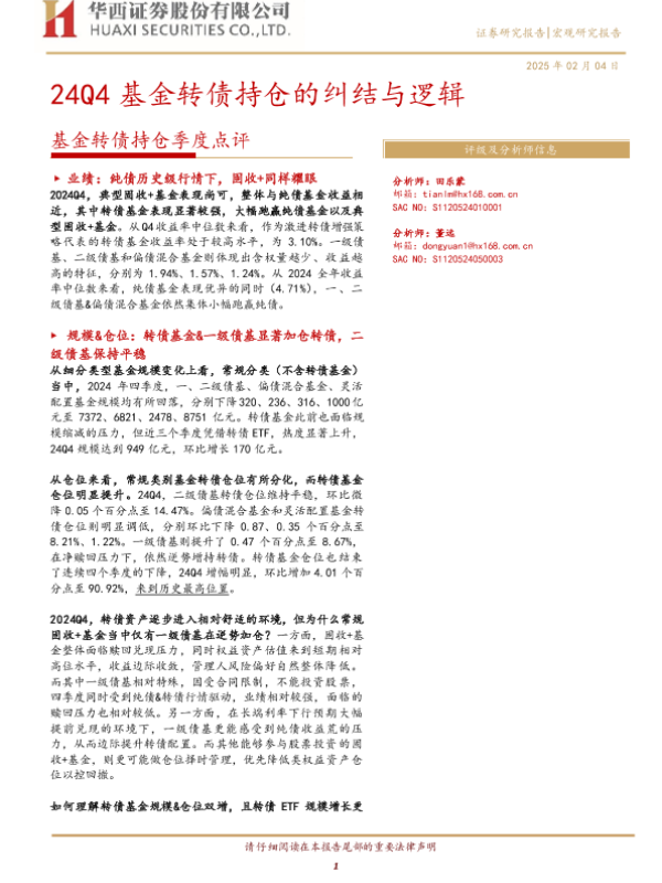 【华西证券】【20250204】基金转债持仓季度点评:24Q4基金转债持仓的纠结与逻辑-18页
