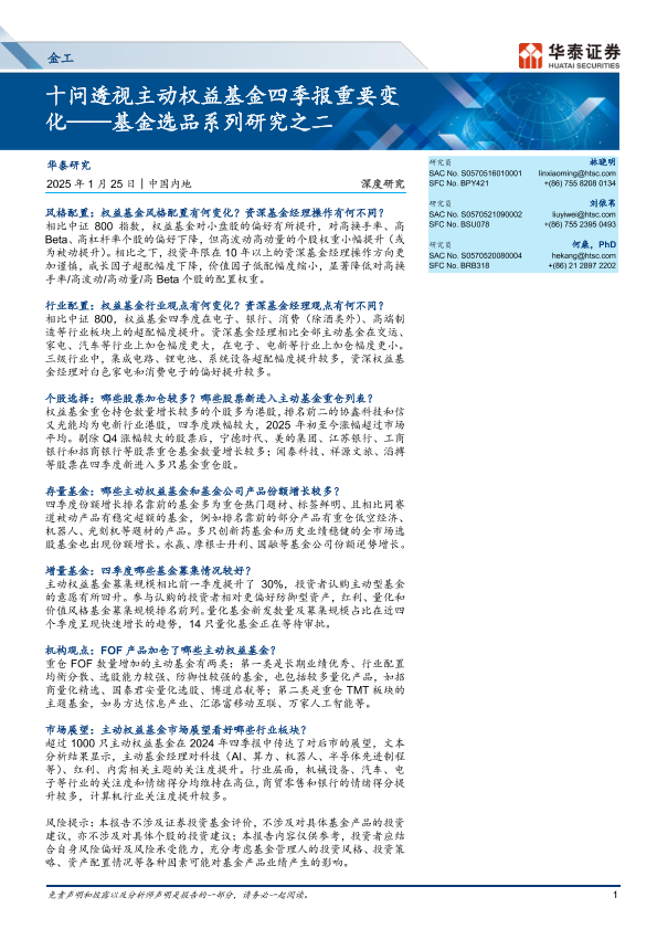 【华泰证券】【20250125】基金选品系列研究之二:十问透视主动权益基金四季报重要变化-21页