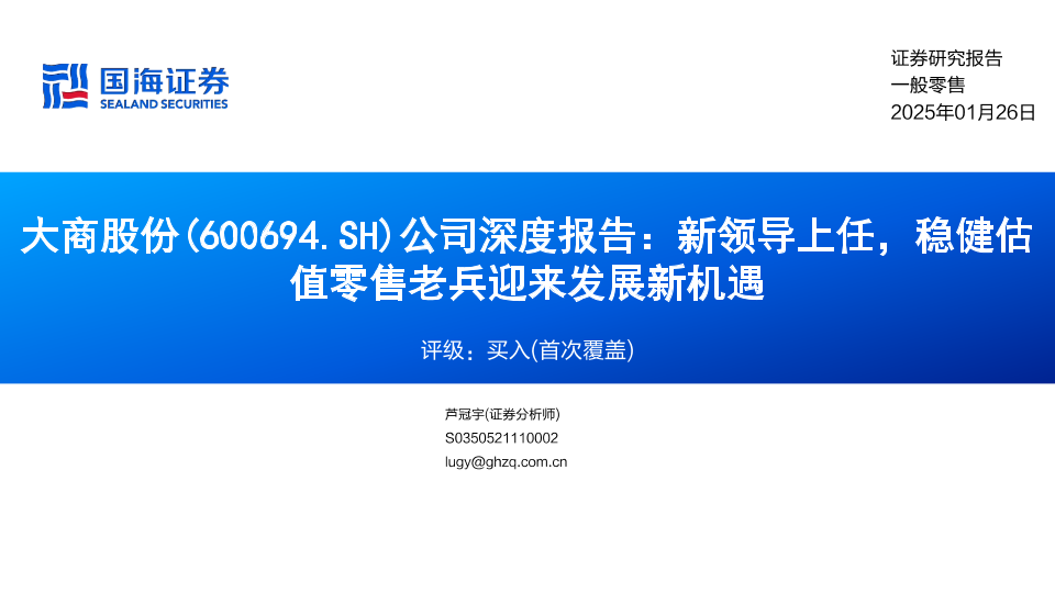 【国海证券】【20250126】大商股份(600694)公司深度报告:新领导上任,稳健估值零售老兵迎来发展新机遇-27页