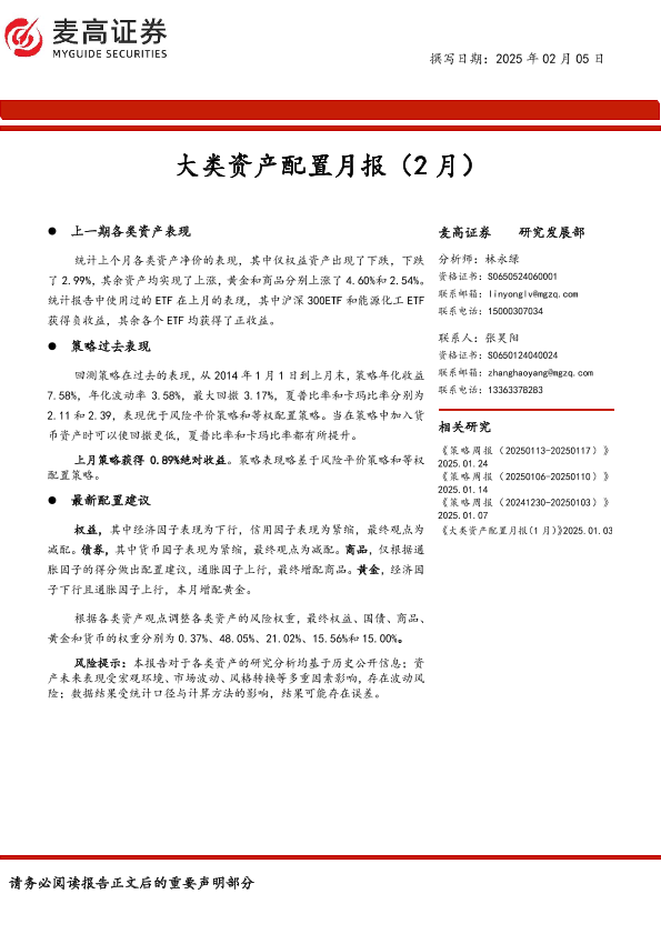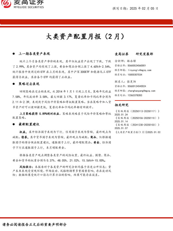 【麦高证券】【20250205】大类资产配置月报(2月)-11页
