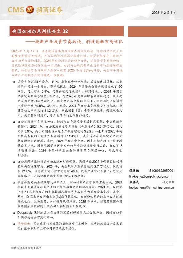 【海通证券】【20250205】央国企动态系列报告之32:战新产业投资节奏加快,科技创新布局优化-32页