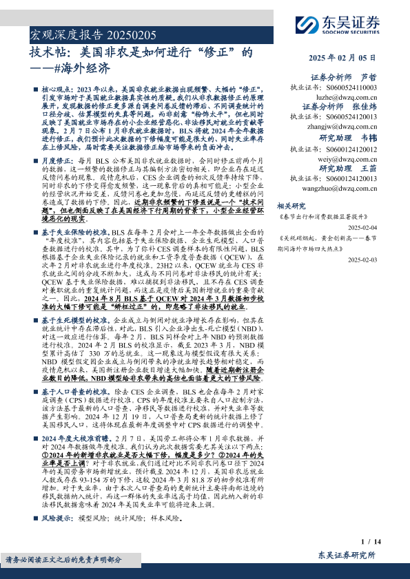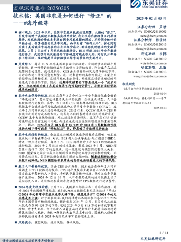 【东吴证券】【20250205】宏观深度报告:海外经济,技术帖,美国非农是如何进行“修正”的-14页