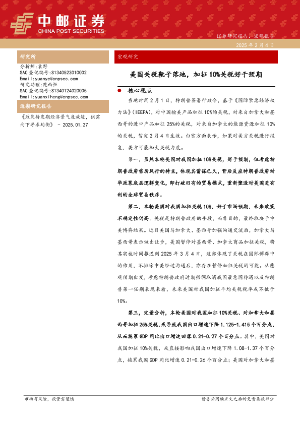 【中邮证券】【20250204】宏观研究:美国关税靴子落地,加征10%关税好于预期-15页