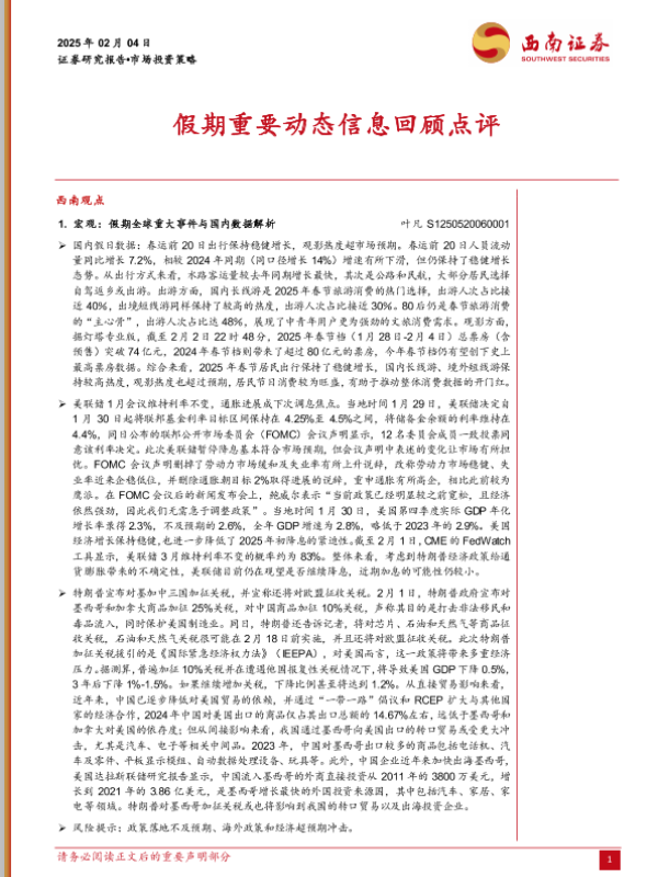 【西南证券】【20250204】市场投资策略:假期重要动态信息回顾点评-12页