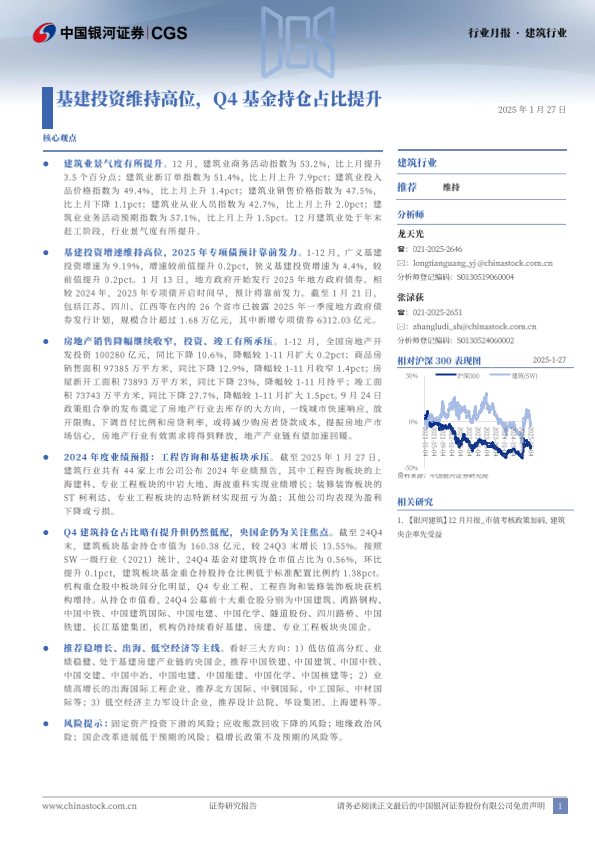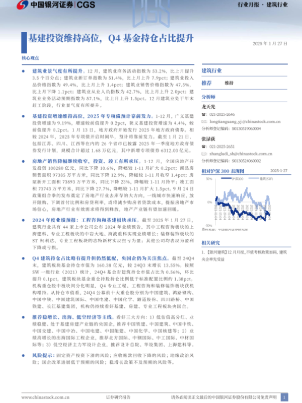 【银河证券】【20250127】建筑行业月报:基建投资维持高位,Q4基金持仓占比提升-21页