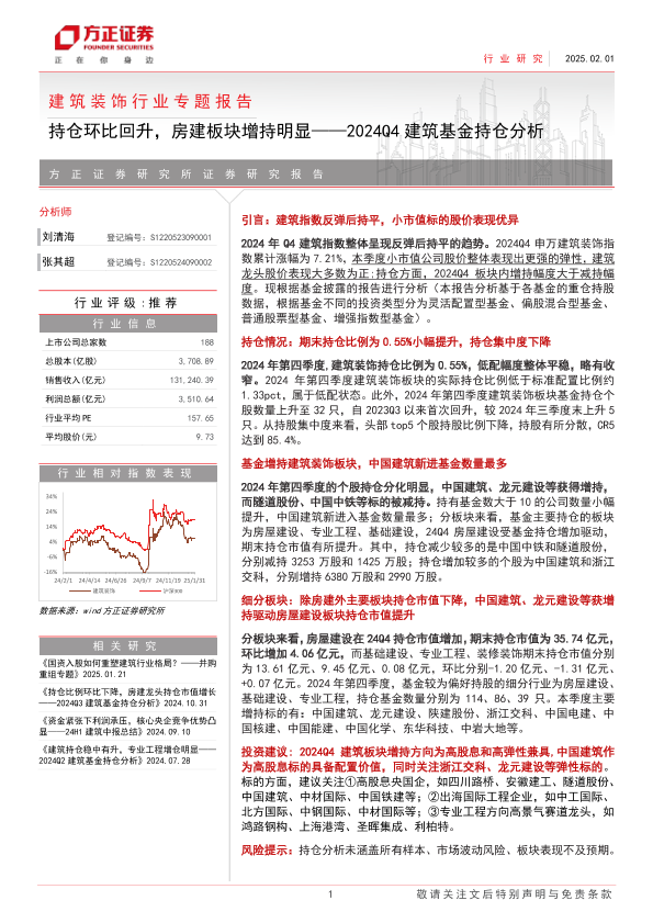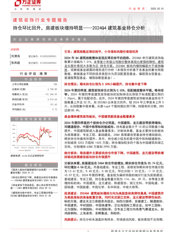 【方正证券】【20250201】建筑装饰行业专题报告:持仓环比回升,房建板块增持明显——2024Q4建筑基金持仓分析-26页