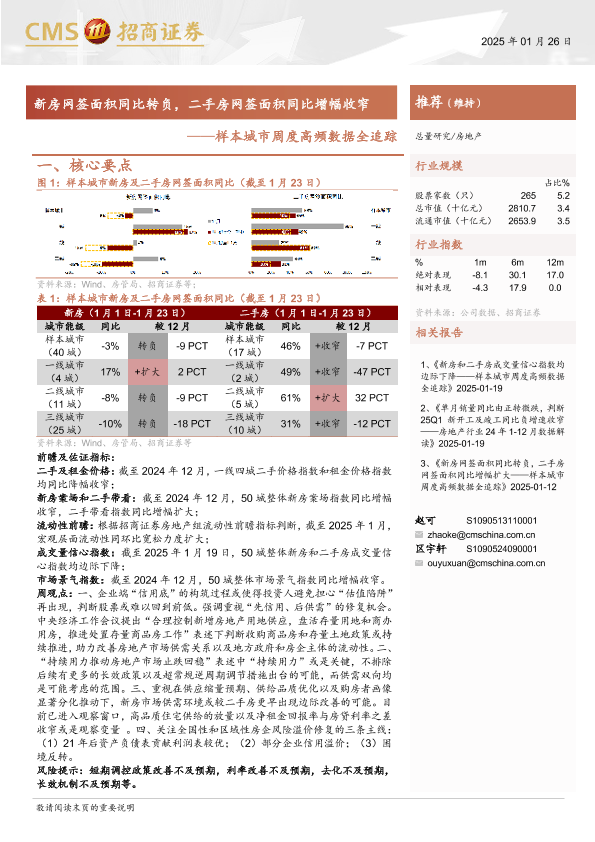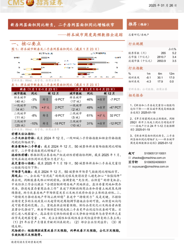 【海通证券】【20250126】房地产行业样本城市周度高频数据全追踪:新房网签面积同比转负,二手房网签面积同比增幅收窄-12页
