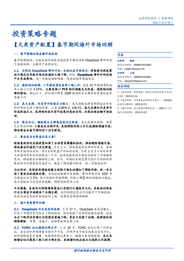 DeepSeek事件 全球资产配置 关税政策 金融市场 黄金价格