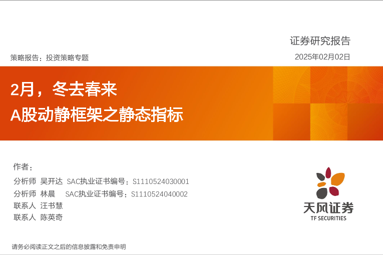 【天风证券】【20250202】投资策略专题:2月,冬去春来,A股动静框架之静态指标-18页