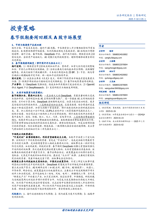 【国盛证券】【20250205】投资策略:春节假期要闻回顾及A股市场展望-14页