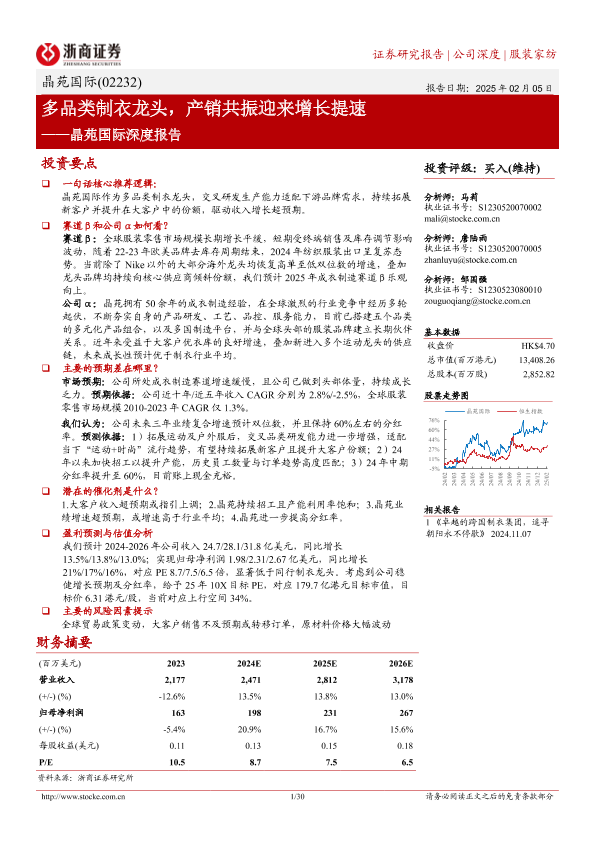 【浙商证券】【20250205】晶苑国际(02232.HK)深度报告:多品类制衣龙头,产销共振迎来增长提速-30页