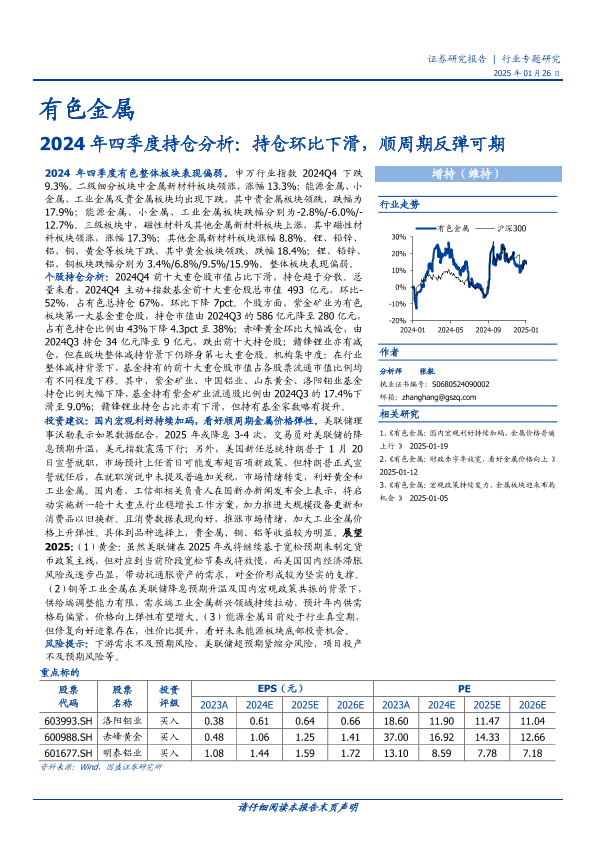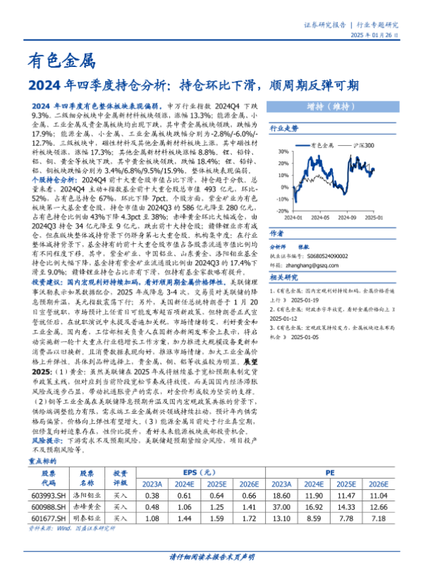 【国盛证券】【20250126】有色金属行业2024年四季度持仓分析:持仓环比下滑,顺周期反弹可期-12页