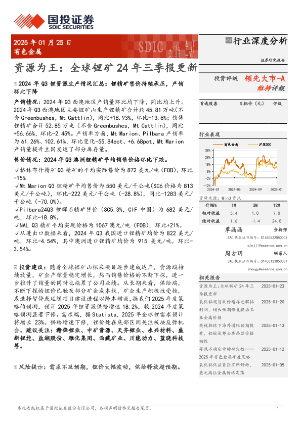 【国投证券】【20250125】有色金属行业深度分析:资源为王,全球锂矿24年三季报更新-19页