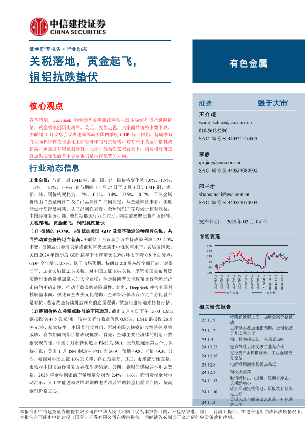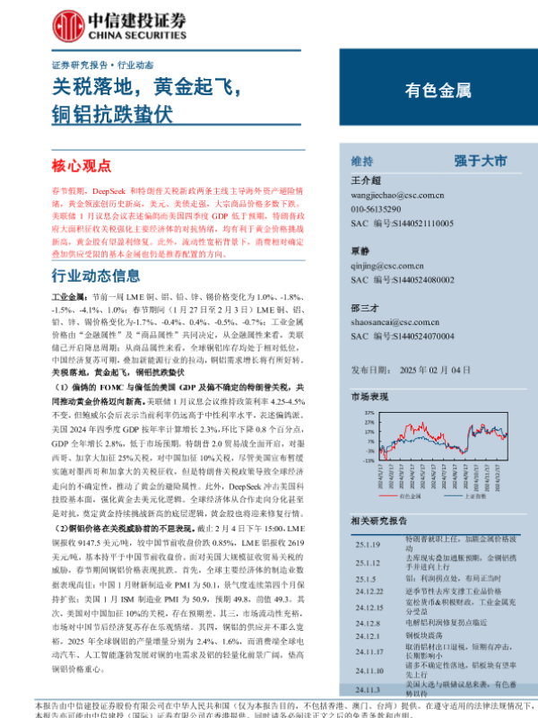 【中信建投证券】【20250204】有色金属行业:关税落地,黄金起飞,铜铝抗跌蛰伏-13页