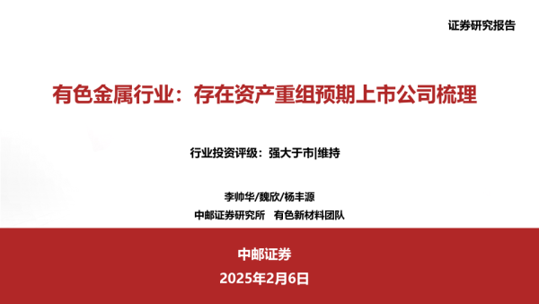 【中邮证券】【20250206】有色金属行业:存在资产重组预期上市公司梳理-43页