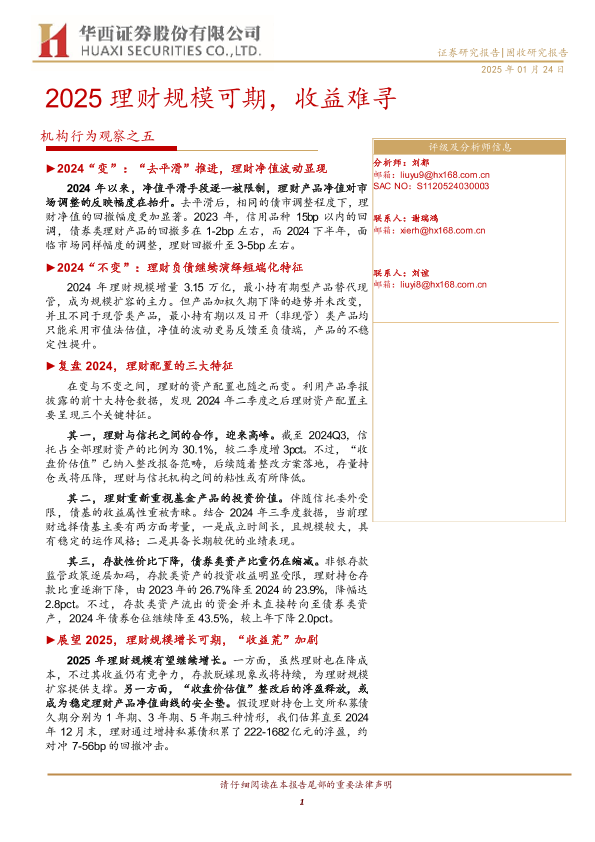 【华西证券】【20250124】机构行为观察之五:2025理财规模可期,收益难寻-17页
