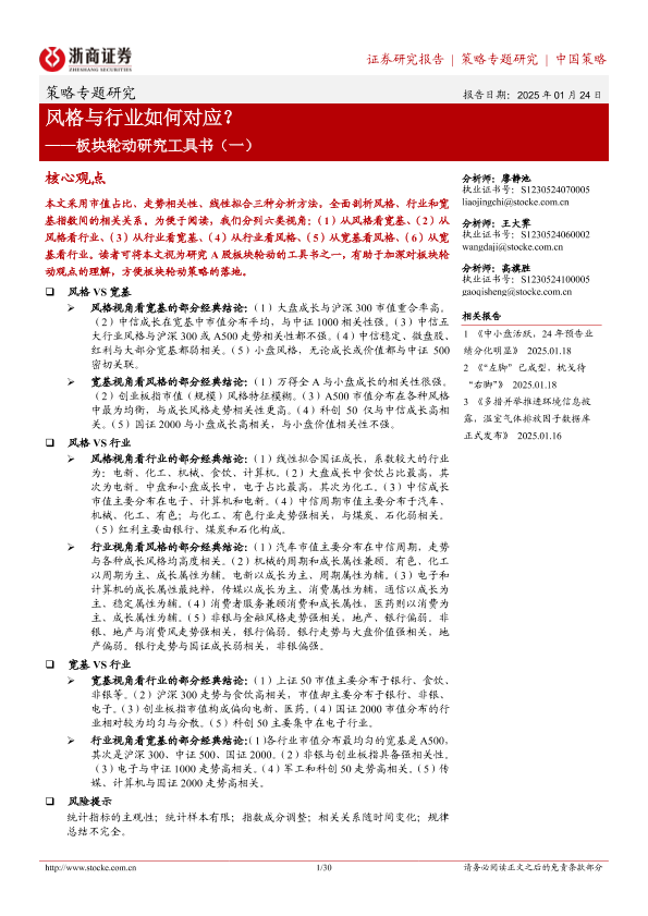 【浙商证券】【20250124】板块轮动研究工具书(一):风格与行业如何对应?-30页