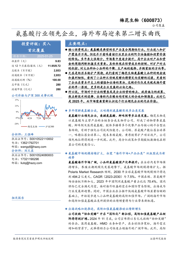 【华安证券】【20250125】梅花生物(600873)氨基酸行业领先企业,海外布局迎来第二增长曲线-53页