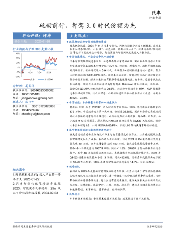 【华安证券】【20250128】汽车行业专题:砥砺前行,智驾3.0时代份额为先-53页