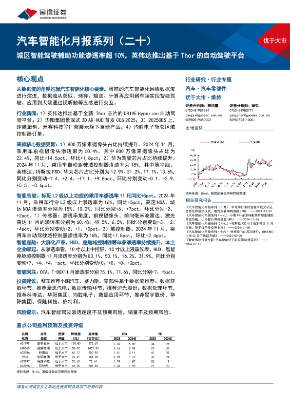 【国信证券】【20250124】汽车行业智能化月报系列(二十):城区智能驾驶辅助功能渗透率超10%,英伟达推出基于Thor的自动驾驶平台-64页