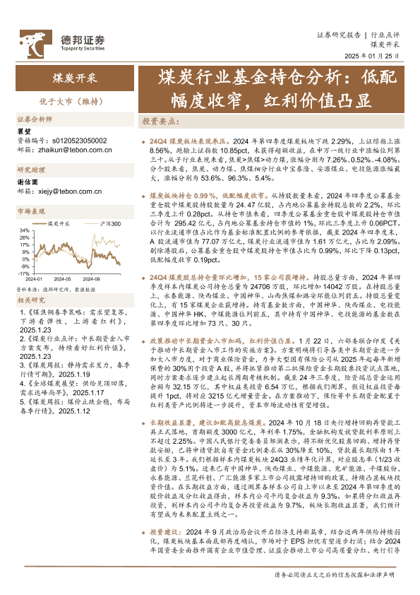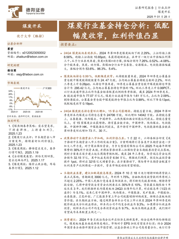 【德邦证券】【20250125】煤炭行业基金持仓分析:低配幅度收窄,红利价值凸显-11页