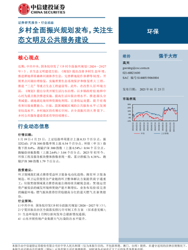 【中信建投证券】【20250125】环保行业:乡村全面振兴规划发布,关注生态文明及公共服务建设-12页