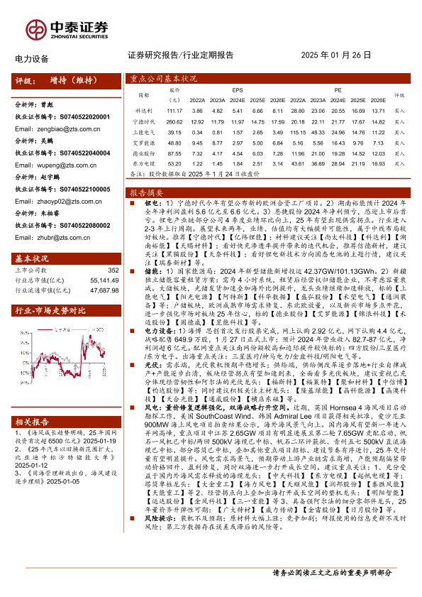【中泰证券】【20250126】电力设备行业:IRA资金审批或被叫停,多地海风竞配陆续完成-15页